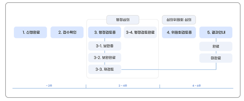 신청 후 평균적으로 4주 정도 소요됩니다. 다만, 서류 보완이 필요할 경우 추가 시간이 걸릴 수 있습니다.